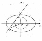 为直径的圆相切并与椭圆C 交于A,B 两点,