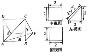 19.(本小题满分12分)一个多面体的直观图及三视图如图所示:(其中M,N分别是AF,BC的中点)