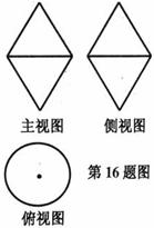 16.如图,一个空间几何体的主视图、侧视图是周长为4一个内角为60°的菱形,俯视图是圆及其圆心,那么这个几何体的表面积为 .