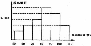 15.某地为了了解该地区10000户家庭的用电情况,采用分层抽样的方法抽取了500户家庭的月平均电用量,并根据这500户家庭月平均用量画出频率分布直方图(如下图),则该地区1000户家庭中月平均用电度数在[70,80]的家庭有 户。