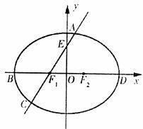 中,F1,F2分别为椭圆的左、右焦点,B、D分别为椭圆的左、右顶点,A为椭圆在第一象限内的任意一点,直线AF1交椭圆于另一点C,交y轴于点E,且点F1、F2三等分线段BD。