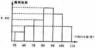 11.某地为了了解该地区10000户家庭的用电情况,采用分层抽样的方法抽取了500户家庭的月平均电用量,并根据这500户家庭月平均用量画出频率分布直方图(如下图),则该地区1000户家庭中月平均用电度数在[70,80]的家庭有 户。