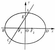 中,F1,F2分别为椭圆的左、右焦点,B、D分别为椭圆的左、右顶点,A为椭圆在第一象限内的任意一点,直线AF1交椭圆于另一点C,交y轴于点E,且点F1、F2三等分线段BD。