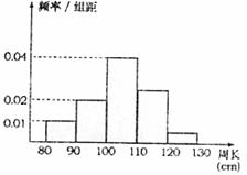 4.为了解一片经济林的生长情况,随机测量了其中100株树木的底部周长(单位:cm)。根据所得数据画出样本的频率分布直方图(如图),那么在这100株树木中,底部周长小于110cm的株数是( )