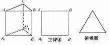 面A1B1C1,正视图是边长为2的正方形,该三棱柱的侧视图面积为 ( )