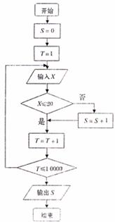 13.为调查某市中学生平均每人每天参加体育锻炼时间X(单位:分钟),按锻炼时间分下列四种情况统计:①0~10分钟;②11~20分钟;③21~30分钟;④30分钟以上,有10000名中学生参加了此项活动,下图是此次调查中某一项的流程图,若平均每天参加体育锻炼的时间在0~20分钟的学生的频率是0.15,则输出的结果为 。
