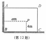 12.如图,有一直角墙角,两边的长度足够长,在P处有一棵树与两墙的距离分别是