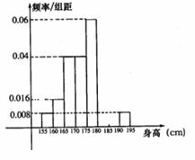 从某学校高三年级共800名男生中随机抽取50名测量身高,据测量被测学生身高全部介于155cm和195cm之间,将测量结果按如下方式分成八组:第一组
