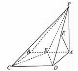 如图,四棱锥P-ABCD的底面是正方形,PA⊥底面ABCD,PA=2,∠PDA=45°,点E、F分别为棱AB、PD的中点。
