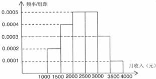 13.下图是某地10000名居民的月收入调查数据频率分布直方图,现要从这些人中再用分层抽样方法抽出100人作进一步调查,则在