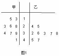 6.图1是某赛季甲、乙两名篮球运动员每场比赛得分的茎叶图,则甲、乙两人这几场比赛得分的中位数之和是 ( )