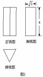 9.图2为一个几何体的三视图,正视图和侧视图均为矩形,俯视图为正三角形,尺寸如图,则该几何体的侧面积为 ( )