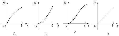 9.如图所示,液体从一圆锥形漏斗漏入一圆柱形桶中,开始时,漏斗盛满液体,经3分钟漏完.已知圆柱中液面上升的速度是一个常量,H是圆锥形漏斗中液面下落的距离,则H与下落时间