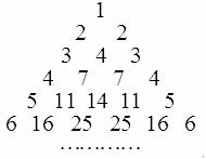 ;每行中的其余各数分别等于其“肩膀”上的两个数之和(第一、二行除外,如图),设第n(n为正整数)行中各数之和为b。