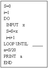 6.下图为一个求20个数的平均数的程序,在横线上应填充的语句为 ( )