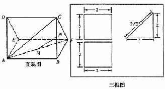 17.(本小题满分15分)一个多面体的直观图及三视图如图所示:(其中M、N分别是AF、BC的中点).
