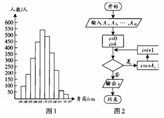 12.图1是某县参加2007年高考的学生身高条形统计图,从左到右的各条形图表示学生人数依次记为A1、A2、…A10(如A2表示身高(单位:cm)在[150,155