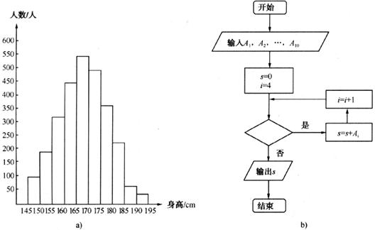 [如A2表示身高(单位:cm)在[150,155]内的学生人数]。图b是统计图a中身高在一定范围内学生人数的一个算法流程图。现要统计身高在160-180cm(含160cm,不含180cm)的学生人数,那么在流程图中的判断框内应填写的条件是