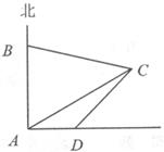 如下图所示,现有A、B、C、D四个海岛,已知B在A的正北方向15海里处,C在A 的东偏北30°方向,又在D的东北方向,且B、C相距21海里,求C、D两岛间的距离。