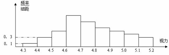 14.为了解某校高三学生的视力情况 ,随机地抽查了该校100名高三学生的视力情况,得到的频率分布直方图如下,由于不幸将部分数据丢失,但知道前4组的频率成等比数列,后6组的频率成等差数列,设最大的频率为a,视力在4.6到达5.0之间的学生数为b,则a, b的值分别为____,____。