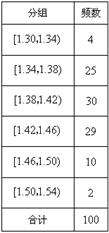 在生产过程中,测得纤维产品的纤度(表示纤维粗细的一种量)共有100个数据,将数据分组如下表: