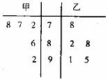6.甲、乙两名同学在5次体育测试中的成绩统计入右面的茎叶图所示,若甲、乙两人的平均成绩分别是X甲,X乙,则下列结论正确的是 ( )