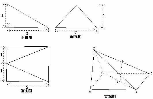 的直观图及三视图如图所示,E、F分别为PC、BD的中点.