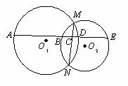 如图,⊙O1与⊙O2交于M、N两点,直线AE与这两个圆及MN依次交于A、B、C、D、E.求证:AB·CD=BC·DE.
