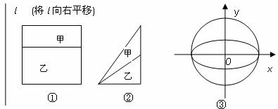 14.我们可以运用下面的原理解决一些相关图形的面积问题:如果与一固定直线平行的直线被甲、乙两个封闭的图形所截得线段的比都为k,那么甲的面积是乙的面积的k倍.你可以从给出的简单图形①、②中体会这个原理.现在图③中的曲线分别是
