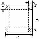 20.从边长2a的正方形铁片的四个角各截一个边长为x的正方形,然后折成一个无盖的长方体盒子,要求长方体的高度x与底面正方形边长的比不超过正常数t.