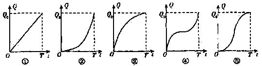 16.为缓解南方部分地区电力用煤紧张的局面,某运输公司提出五种运输方案,据预测,这五种方案均能在规定时间T完成预期的运输任务Q0,各种方案的运煤总量Q与时间t 的函数关系如下图所示.在这五种方案中,运煤效率(单位时间的运煤量)逐步提高的是_________.(填写所有正确的图象的编号) ![]()