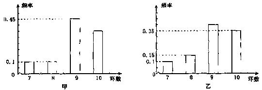 18.(本小题满分12分)甲、乙两运动员进行射击训练,已知他们击中的环数都稳定在7,8,9,10环,且每次射击成绩互不影响.射击环数的频率分布条形图如下:
