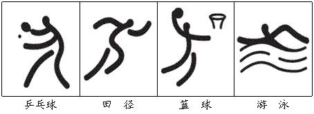 22.下面是2008年奥运会四个比赛项目的标识图形:请你选取一个,围绕图形内容,紧扣动态特征,展开联想,写一段话。要求语言通顺,运用两种以上(含两种)的修辞手法,不少于40字(含标点符号)。(6分)