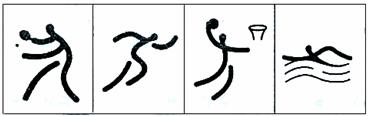 22.下面是2008年奥运会四个比赛项目的标识图形:请你选取一个,围绕图形内容,紧扣动态特征,展开联想,写一段话。要求语言通顺,运用两种以上(含两种)的修辞手法,不少于40字(含标点符号)。(6分)