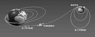 “嫦娥一号”卫星由长三甲运载火箭送入绕地轨道,然后要在这三条大椭圆轨道上运行共约7天,做三次大的轨道运动,在获得足够的速度后,卫星进入地月转移轨道。随后卫星将沿着这条轨道飞向月球,飞行114小时后到达近月点。此时,卫星要进行减速制动,以让月球捕获探测器。随后要进行三次近月制动,让“嫦娥一号”最终变为环月飞行的圆轨道卫星。