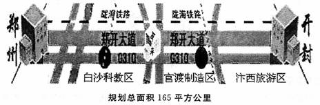 19.“郑开大道”已开通一年,有关部门做出的“郑开大道沿线规划”近日出台。下面是“郑开大道沿线规划”图,请为该图配上文字说明。要求要点明确,顺序合理,语言简洁,不超过80字。(5分)