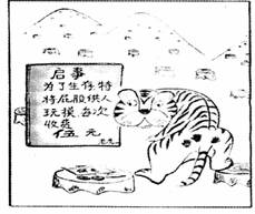 (3)仔细观察画面,展开合理想像,对老虎张贴这张启事时的动作进行细节描摹,写出一小段文字。要求:须出现比喻的修辞方法。(3分)