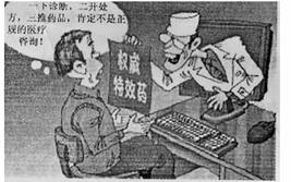 22.下面这幅漫画,生动地再现了当今社会就医方面的一种现象,请你给漫画写上一段简短的说明文字。要求:语言流畅,观点鲜明。(不超过40字)(4分)