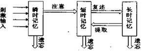 22.下图是记忆的三级信息加工模式图。请根据图示,对图中的三种记忆关系作简要说明。