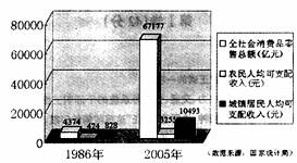 23.下面是一张全国消费情况统计表,根据图表所反映的情况,写出两条结论(要求不出现具体数据)。(4分)