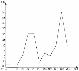 23.下面是某学年度的某市小学、初中和高中各年级小发明、小论文获奖学生年级分布曲线图。图中有三处高峰和三处低谷,请选择其中一处高峰和一处低谷进行说明,并探究产生这一现象的原因。(4分)