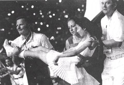 18.某电视台制作了一个“北京奥运感动瞬间”的节目,其中选取了这幅在开幕式上三名外国人救助一名晕倒的中国女孩的画面。请你以节目主持人的身份,为其配上一段画外音。要求有描述有评论,90字左右。(5分)