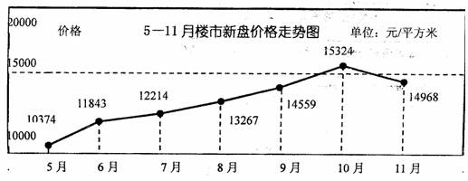 20.2007年年末北京市建委官方网站公由了京城房屋销售价格的情况。请你为下面图表添加一段简要的文字,说明图表所传达的主要信息。(不超过50字)(5分)