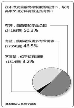 21.下图是某网站就最近热议的文理分科问题所作的网络调查饼状图,请用一句话概括该图表所反映的主要内容。(答案中不得出现数字,字数40字以内)(3分)