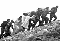 18.下边是一张汶川特大地震中抢运伤员的照片。这张照片震撼人心,请对此写几句简明得体、鲜明生动的话,表达你的颂扬之情。(100字以内)(6分)
