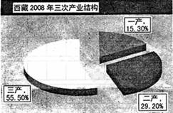 19.下面是西藏2008年三次产业占全区GDP比重的示意图,请用一句话表述图示内容。(不超25字)(5分)