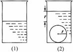 (14)如图,一个底面半径为R的圆柱形量杯中装有适量的水.若放入一个半径为r的实心铁球,水面高度恰好升高r,则