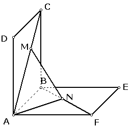 (18乙)如图,正方形ABCD、ABEF的边长都是1,而且平面ABCD、ABEF互相垂直。点M在AC上移动,点N在BF上移动,若CM=BN=![]()