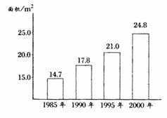 (13)据新华社2002年3月12日电,1985年到2000年间,我国农村人均居住面积如图所示,其中,从________年到________年的五年间增长最快.