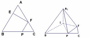 在正三角形ABC中,E、F、P分别是AB、AC、BC边上的点,满足AE:EB=CF:FA=CP:PB=1:2(如图1)。将△AEF沿EF折起到
